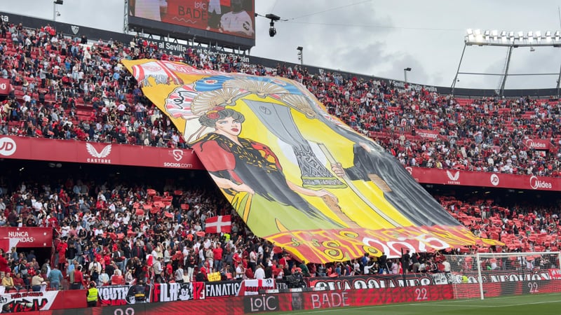 ¡Buen ambiente en el Sánchez-Pizjuán con un tifo muy sevillano y con veneno! Queda muy poco para que arranque el partido.