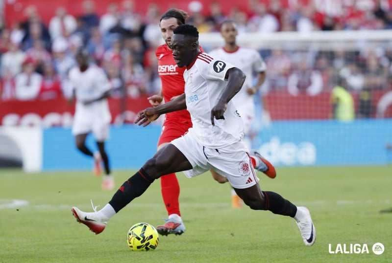 Disparo desde fuera del área muy desviado de Nianzou. Empezó bien la jugada con rapidez pero replegó Osasuna y el Sevilla perdió toda la ventaja...