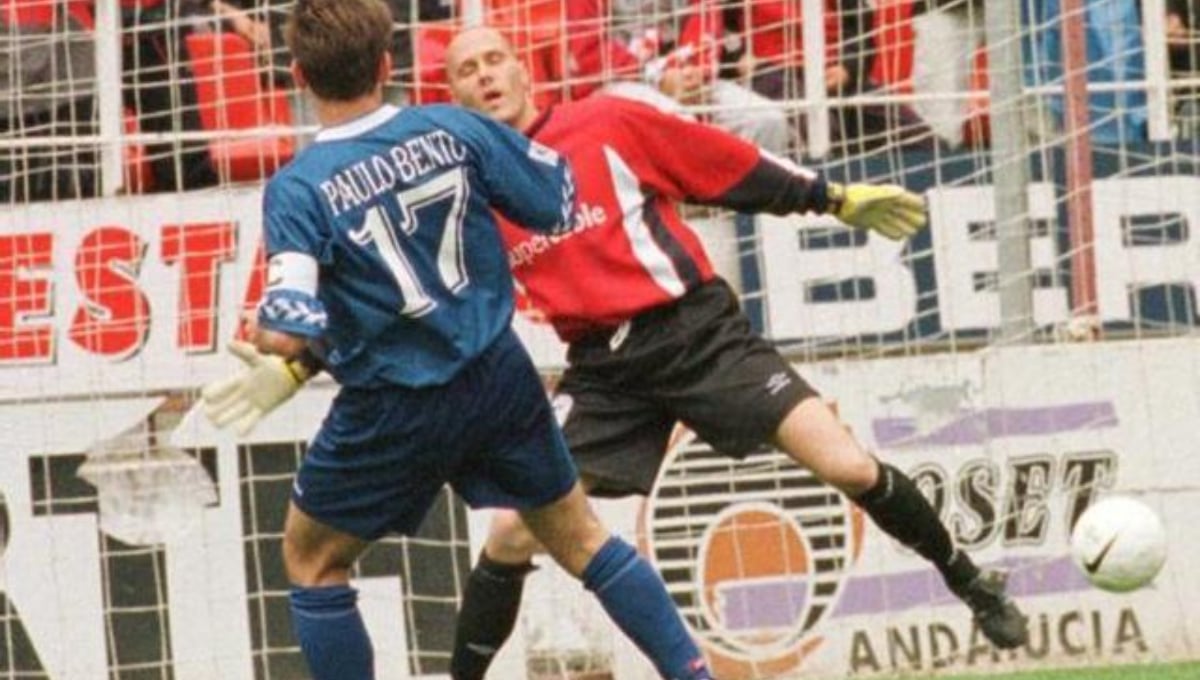 Paulo Bento bate a Frode Olsen en un Sevilla 2-3 Oviedo de la 99/00. Cordon Press
