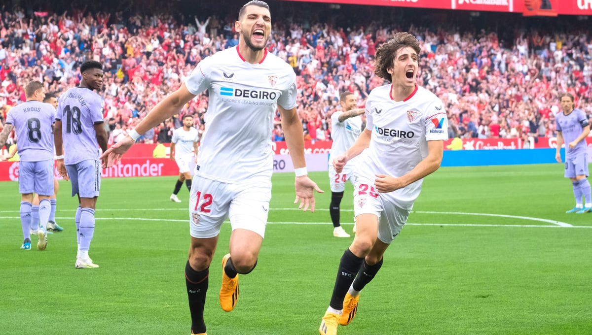 Nervionenses y merengues se enfrentan este sábado a las 19:00 horas en el único encuentro adelantado de la jornada unificada de LaLiga, con ocasión de su penúltima entrega. Y no porque Sevilla FC o Real Madrid tengan ya todos los deberes hechos, sino por dar un día más de descanso a los blanquirrojos para preparar su final de la Europa League, que se disputará en Budapest el próximo miércoles 31 de mayo a partir de las nueve de la noche. Bien es cierto que, por ejemplo, el conjunto de la capital de España ya sólo aspira a mantener su segunda plaza o quedar relegado a la tercera o la cuarta (la Real Sociedad se lleva el 'goal-average' particular y todavía puede igualar esos 74 puntos), pero nunca saldría de la Champions, al tiempo que los de la capital andaluza pueden alcanzar la séptima, en principio con el premio de la Conference League si no hay castigo al Barcelona por el 'caso Negreira'.