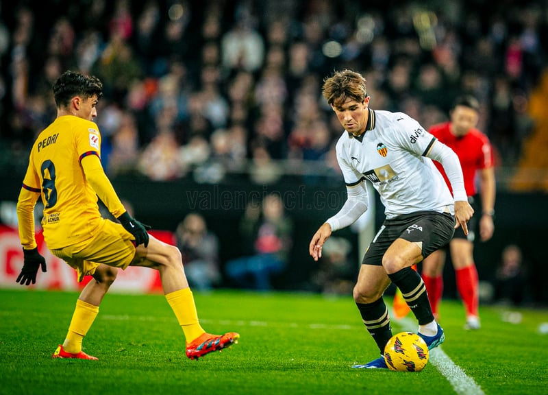 Lo botó Raphinha y finalizó la jugada Balde con un chut flojo que despejó la defensa del Valencia