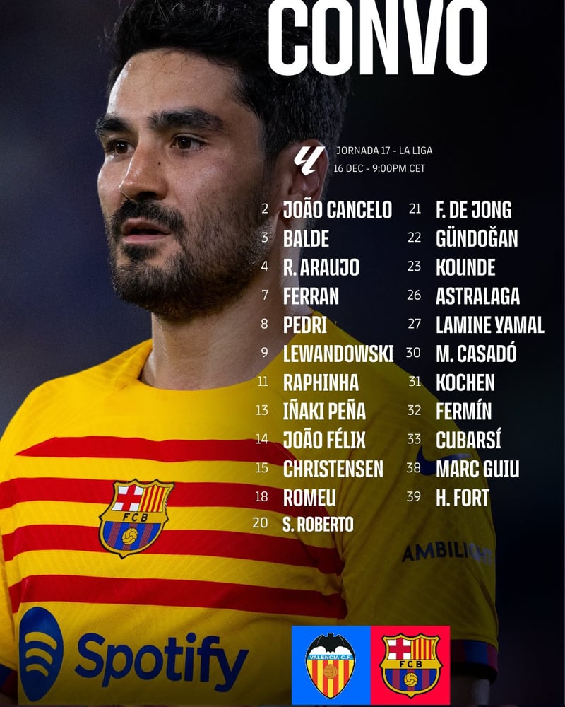 - En el Barça. Entra: Yamal; sale: Gundogan