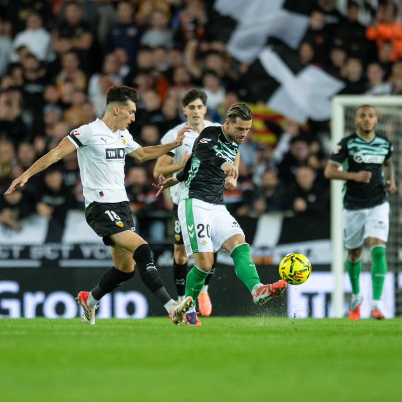 Incidencias: Encuentro correspondiente a la jornada 12ª de LaLiga EA Sports, disputado en Mestalla ante 45.820 espectadores, con 484 aficionados béticos en la grada visitante. Se guardó en los prolegómenos un minuto de silencio, interrumpido con una sonora ovación, en memoria de José Manuel Ochotorena, ex portero y ex preparador de guardametas de la entidad che.