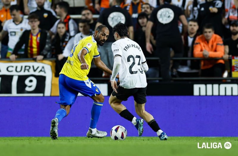 Victoria plácida del Valencia en Mestalla (2-0) ante un Cádiz que volvió a jugar condicionado por una expulsión tempranera de Robert Navarro. El choque 'acabó' en la primera parte con los goles de Gayá y Hugo Duro. Los segundos 45 minutos fueron un trámite