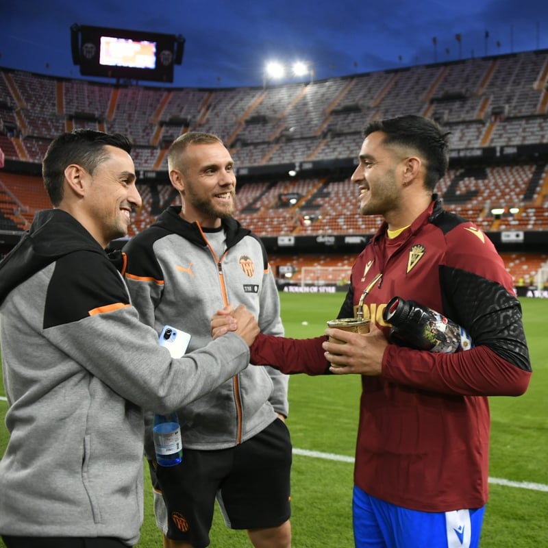 Terminan los calentamientos de Valencia y Cádiz y se meten en vestuarios para recibir las últimas indicaciones de los entrenadores. Todo listo para que ruede la pelota en Mestalla.
