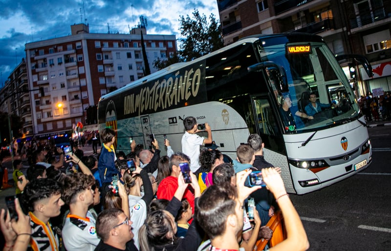 - Así fue recibido el conjunto de Rubén Baraja. La afición del equipo valencianista arropando al equipo en este lunes.