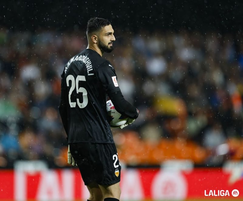 Javi Hernández botó una falta directamente a las manos de Mamardashvili.