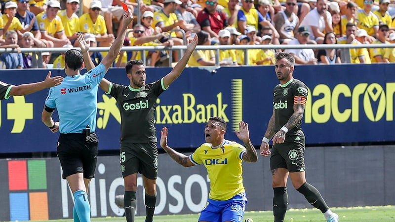 Es la cuarta expulsión que sufre el Cádiz esta temporada. Es el equipo de Primera que ha visto más cartulinas rojas. Demoledor la estadística.