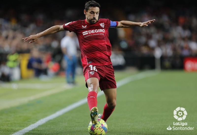 Pero mientras el Sevilla se afanaba en ajustar líneas y coberturas, también empezó a asomarse sobre la portería de Mamardashvili. Primero con una contra que acabó en fuera de juego de En-Nesyri y poco después con una acción entre Ocampos y el meta georgiano que a punto estuvo de marcar el argentino aunque su forzado remate con los tacos lo tapó el meta che con la rodilla y le acabó rebotando al '5' nervionense para marcharse cerca del poste.