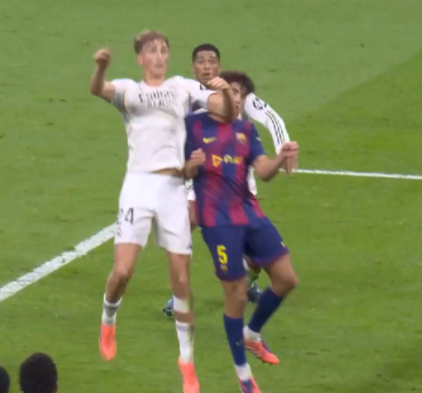 Los segundos 45 minutos bajaron en intensidad como era lógico. El esfuerzo y despliegue realizado por Madrid y Barça en el primer acto pasó factura. Aún así, Soto Grado a instancias del VAR señaló penalti a favor del Real Madrid por manos de Eric García. Llega a línea de fondo Bellingham, bloquea el centro, toca Bellingham otra vez con la rodilla y le da en el brazo a Eric. Pitó córner el árbitro pero Iglesias Villanueva lo llamó desde la sala.