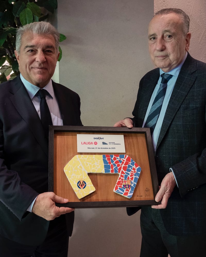Buena sintonía entre las directivas de Villarreal y Barcelona tal y como ha confirmado la imagen de los presidentes de ambos clubes que compartía el cuadro de Castellón.