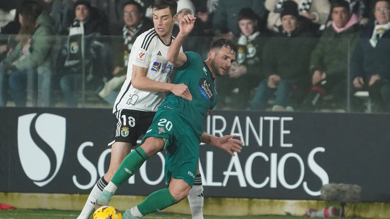 Álvaro Giménez en una acción del encuentro frente al Burgos.Cordon Press.