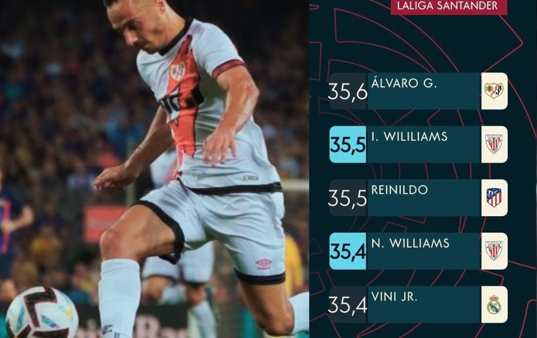 Una visita ante el Sevilla FC en la que, defendiendo la elástica del Rayo Vallecano, vendrá también al Sánchez-Pizjuán el futbolista más rápido de LaLiga. Se trata de Álvaro García, un velocista que el curso pasado ya acabó la temporada como el más veloz de la 21/22, igualando con Iñaki Williams, y que en este curso supera ligeramente al atacante del Athletic Club.