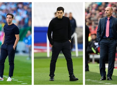 Trejo e Isi Palazón, dialogando en el banquillo del Rayo.IMAGO