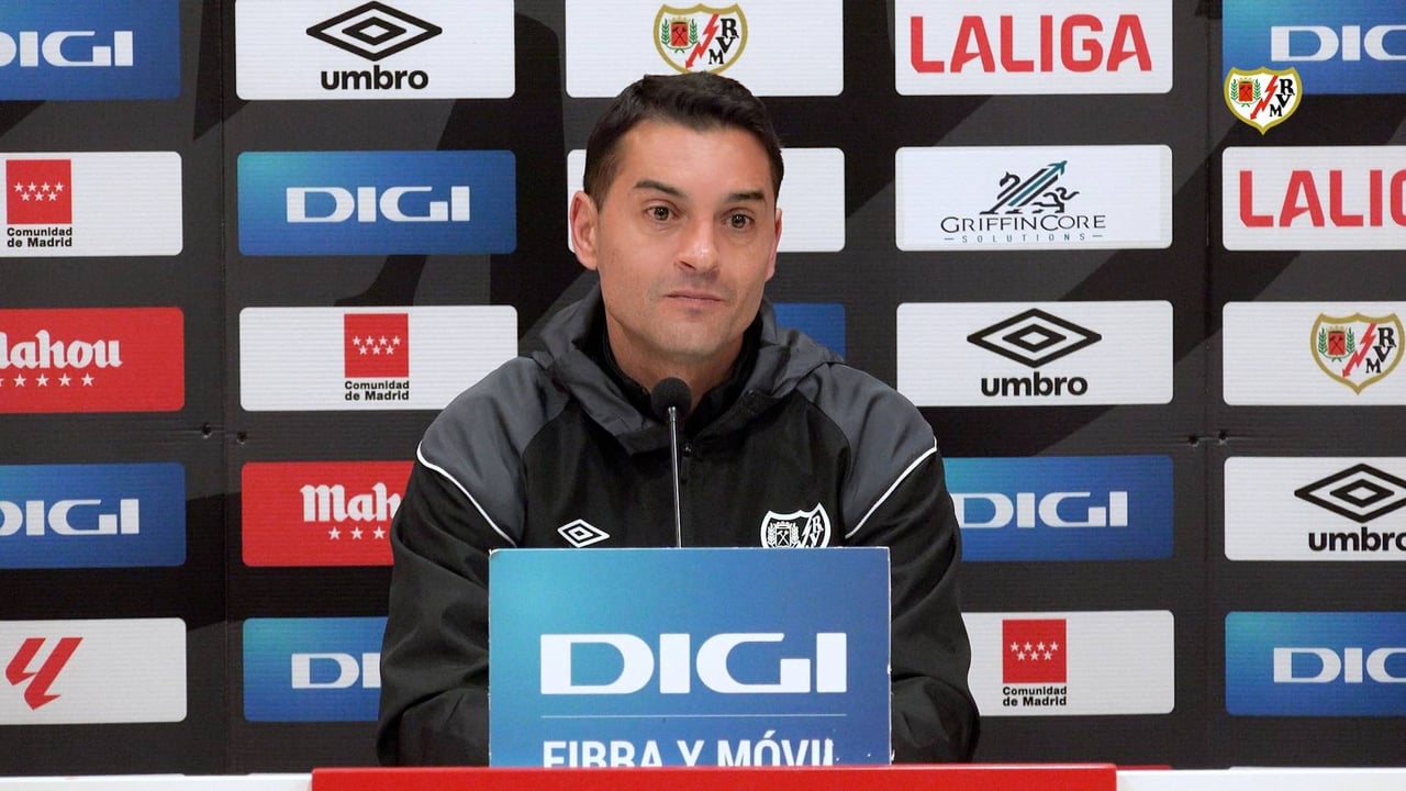 El técnico del Rayo Vallecano prestó declaraciones a los medios en la previa del partido ante el Mallorca en Son Moix de la jornada 24 de LaLiga EA Sports