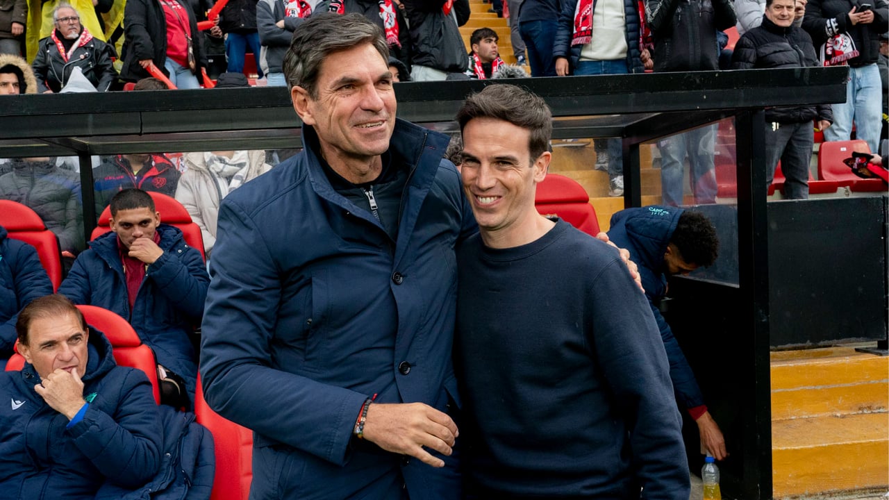 Íñigo Pérez saludando a Mauricio Pellegrino antes del partidoCordon Press