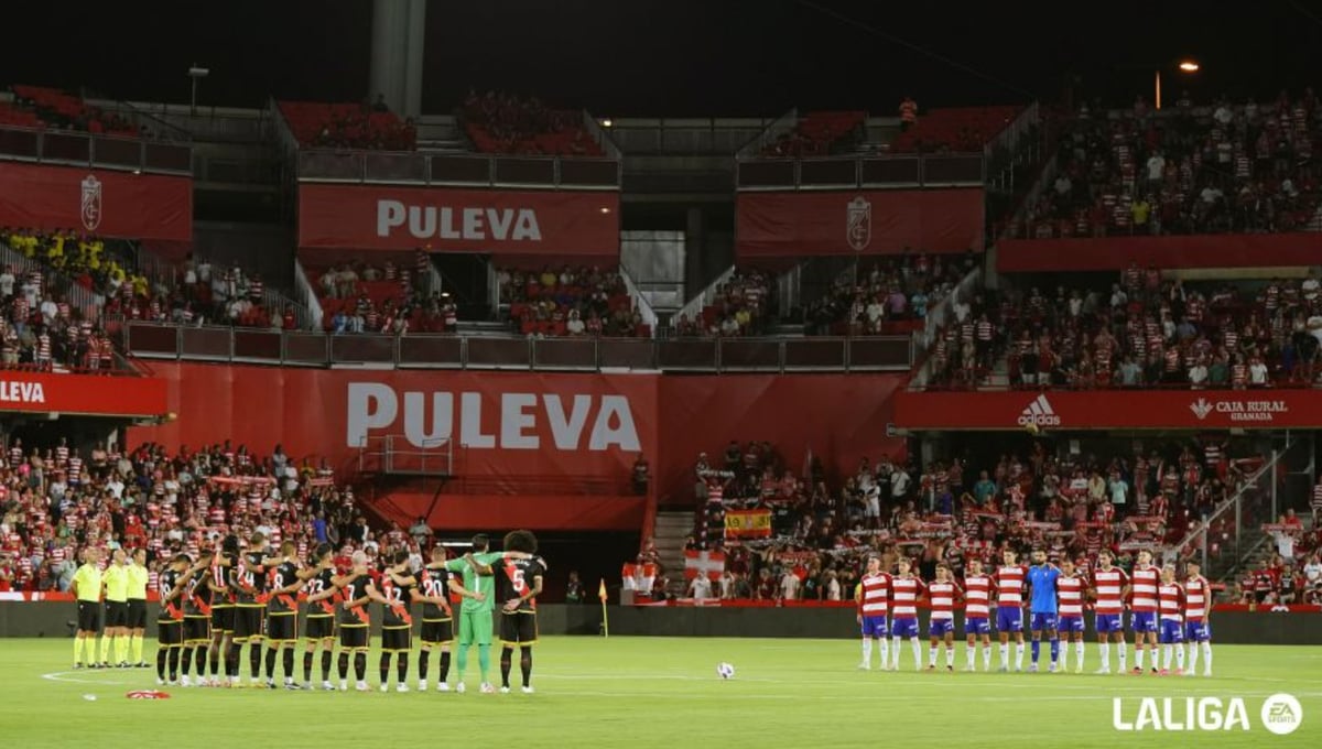 Granada y Rayo Vallecano durante el minuto de silencio previo al partidoLaLiga EA Sports