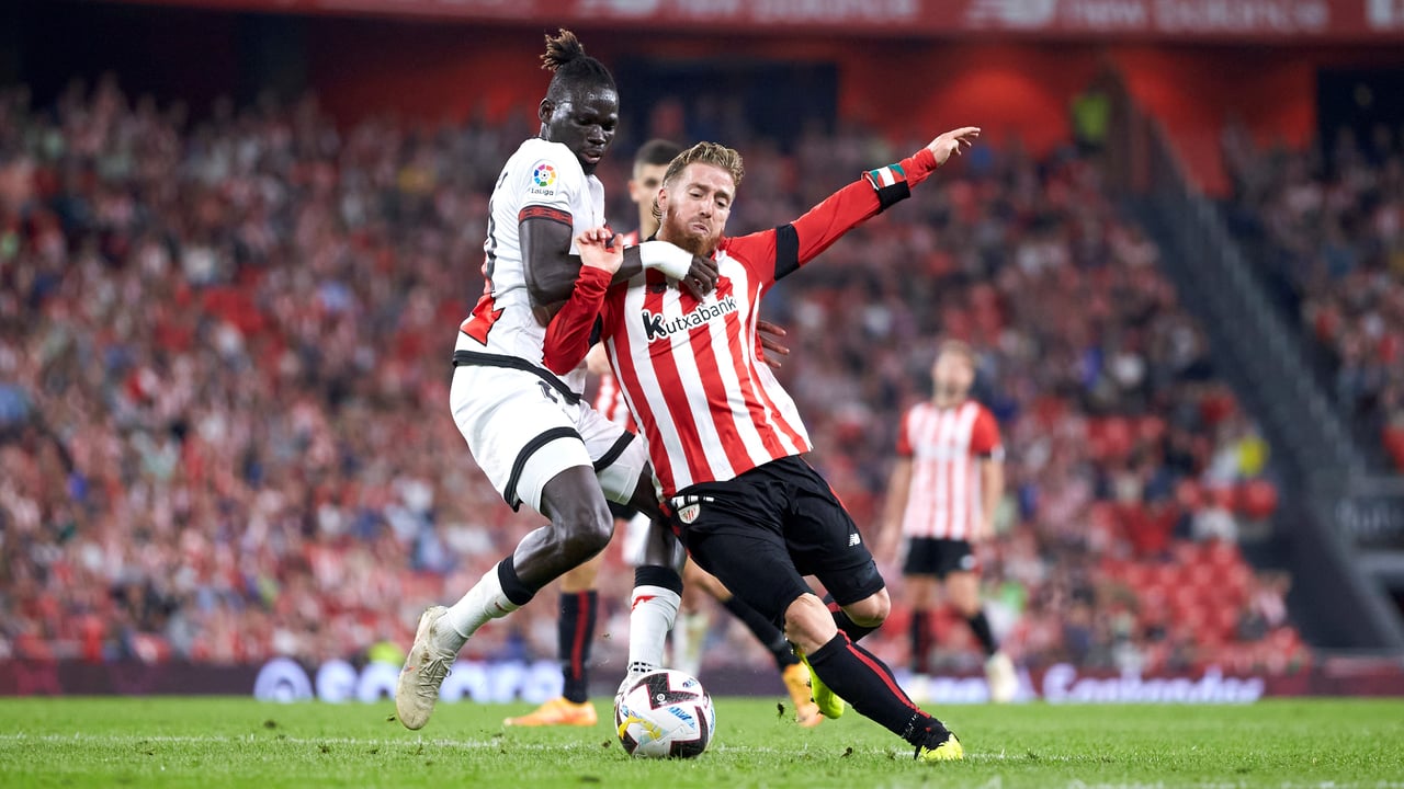 Pathé Ciss intenta arrebatarle el balón a Iker MuniainUES