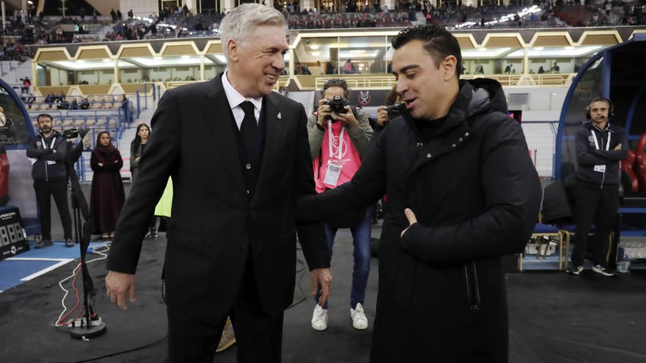 Carlo Ancelotti y Xavi Hernández durante la Supercopa de España de la temporada pasadaUES