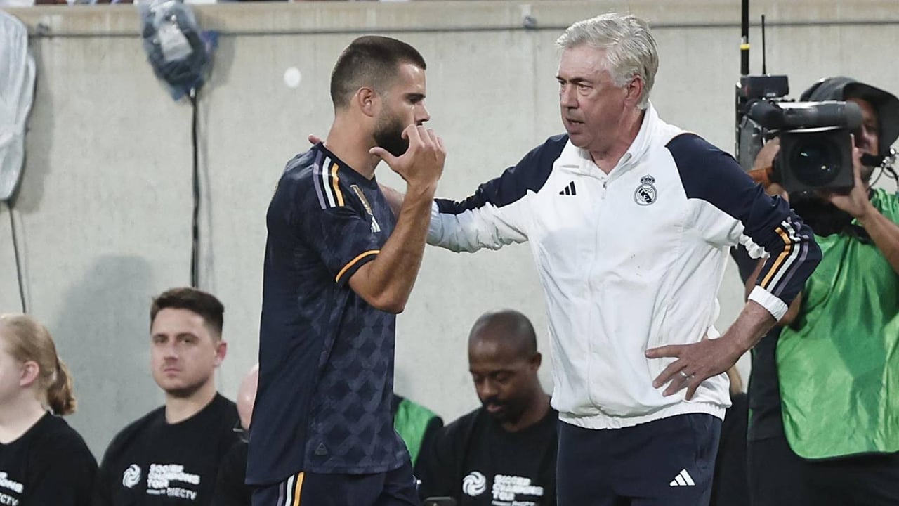 Nacho y Ancelotti conversan tras su sustitución en un amistoso de la pretemporada.UES
