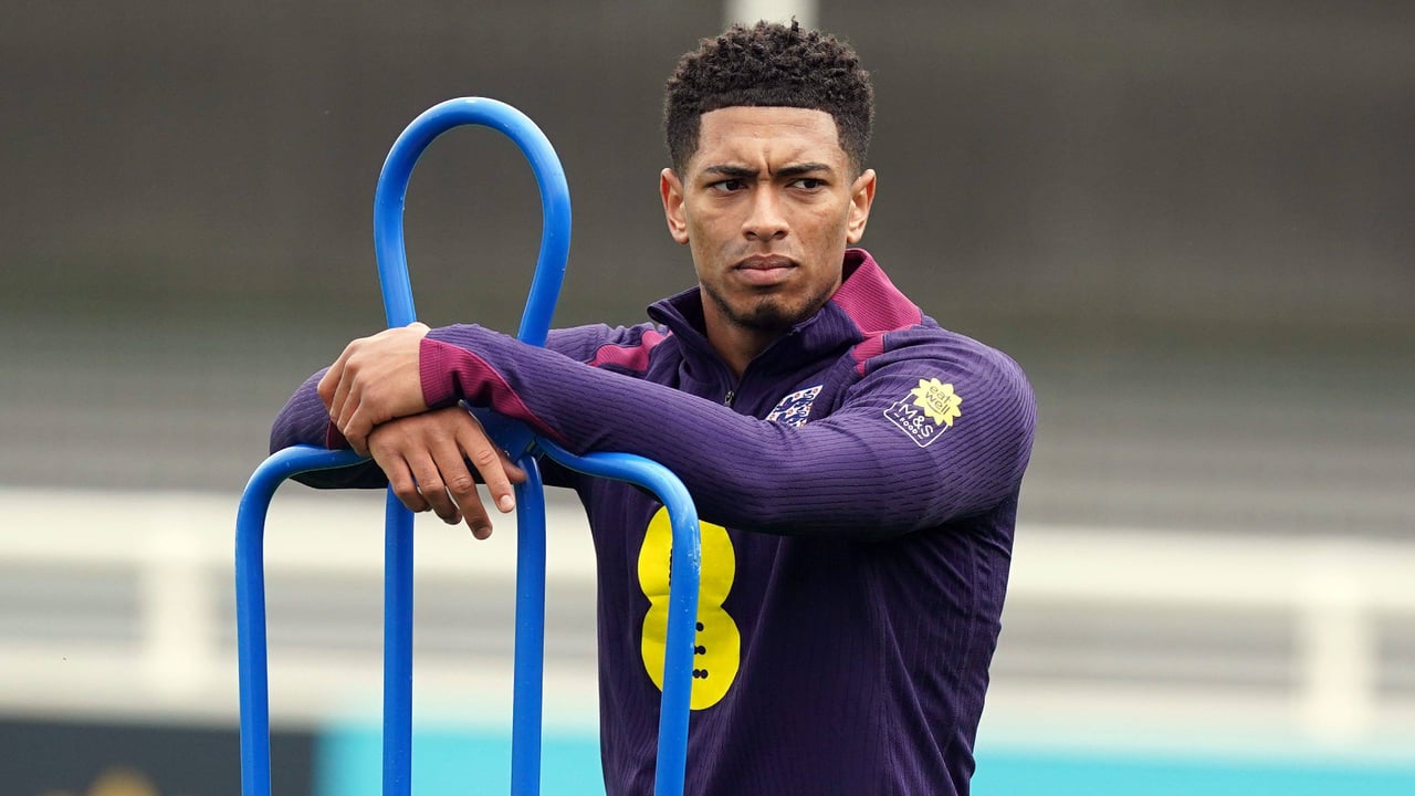 Bellingham, con gesto serio, en un entrenamiento de la selección de Inglaterra previo al duelo contra Brasil.Cordon Press