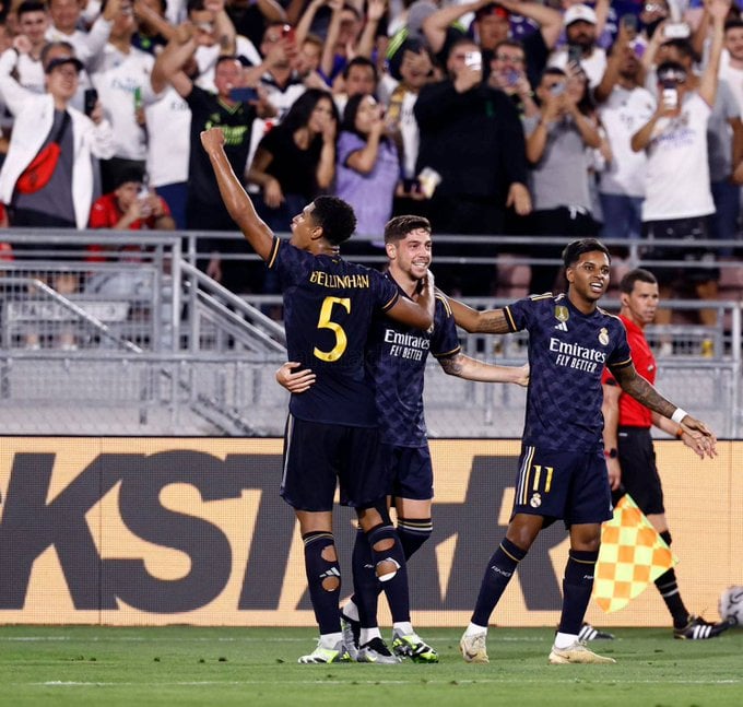 El Real Madrid de la temporada 2023/2024 echa a rodar oficialmente esta madrugada a partir de las 4.00 horas en el Rose Bowl de Pasadena en Los Ángeles. El conjunto de Carlo Ancelotti se estrena en la gira americana jugando con el AC Milan el primer amistoso de la pretemporada. Será la primera vez que los fichajes Jude Bellingham y Arda Güler se enfunden la camiseta del club. Además, hombres como Joselu Mato, Fran García o Brahim Díaz volverán a vestir la zamarra del conjunto blanco tras su paso por RCD Espanyol, Rayo Vallecano y la escuadra rossonera, respectivamente.