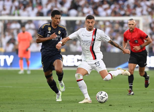 Gran reacción del conjunto dirigido por Ancelotti. Mejoró con los cambios. Buen debut de Bellingham, que dejó detalles en los 63 minutos que jugó. Lo peor de los blancos fueron los errores defensivos y los laterales: mal Mendy y mal Lucas Vázquez. Valverde sorprendió con un doblete en un minuto y Vinicius puso el definitivo 3-2 aprovechando un gran pase de Modric. El equipo madridista perdía 0-2 al descanso. Tomori y Luka Romero fueron los autores de los goles rossoneros.