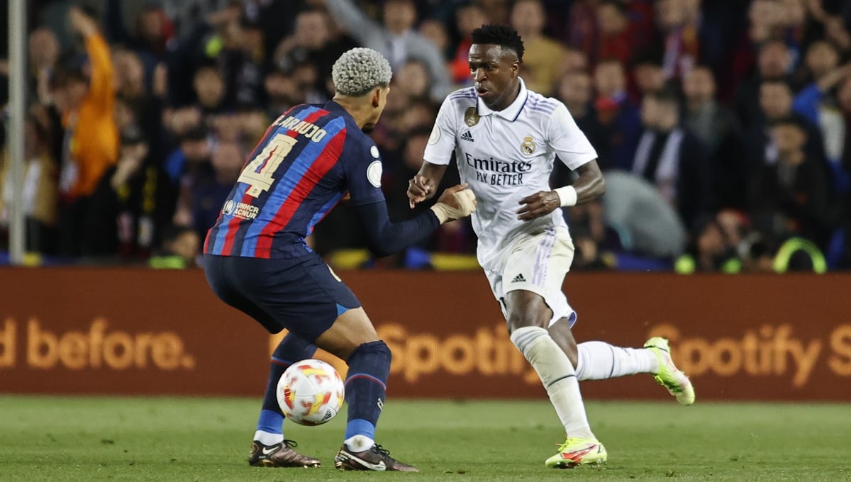 Ronald Araujo, central del Barcelona, consideró que Vinicius "es un gran jugador pero tiene que enfocarse en jugar más", tras el intenso duelo que tuvieron entre ambos en el triunfo por 0-4 del Real Madrid en el clásico de Copa del Rey que supuso la eliminación azulgrana. "Siempre estoy muy tranquilo y creo que Vinicius es un gran jugador, siempre lo digo. Cada vez que nos toca enfrentarnos es un duelo muy sano. Hoy me calenté un poco porque estaba todo el partido calentando a los aficionados y a los compañeros", aseguró a los medios de comunicación el defensa uruguayo tras el encuentro.