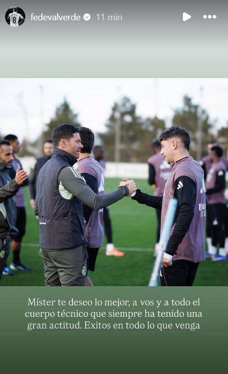 Fede Valverde, uno de los capitanes del Real Madrid: "Míster, te deseo lo mejor ,a vos y a todo el cuerpo técnico que siempre ha tenido una gran actitud. Éxitos en todo lo que venga".