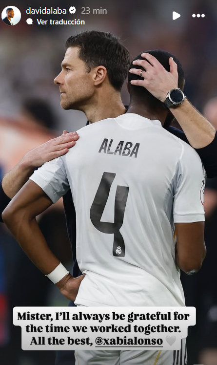 David Alaba se despide de Xabi Alonso: "Míster, siempre estaré agradecido por el tiempo que trabajamos juntos. Todo lo mejor".