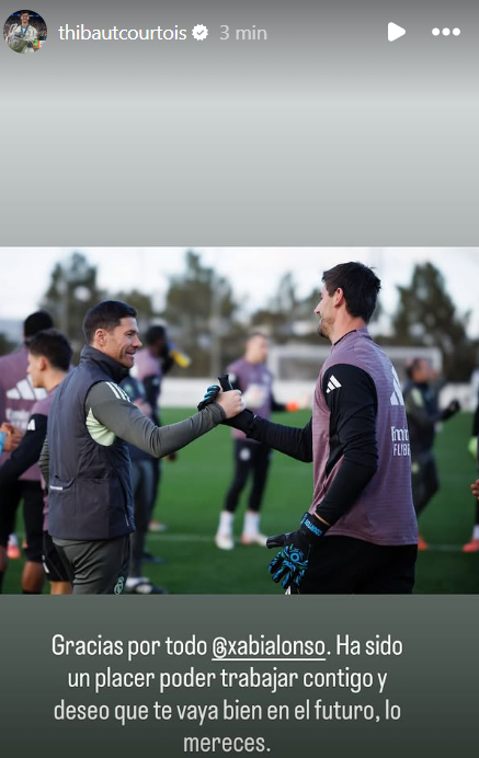 Courtois, uno de los fijos para Xabi Alonso y en el Real Madrid: "Gracias por todo Xabi. Ha sido un placer poder trabajar contigo y deseo que te vaya bien en el futuro, lo mereces".