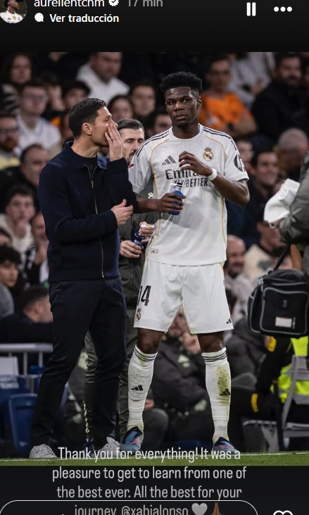 Camavinga se despide de Xabi Alonso: "Gracias míster por tu trabajo, tu pasión y todo lo que diste al equipo. He aprendido mucho contigo y siempre te tendré un gran respeto. Te deseo todo lo mejor en lo que venga".
