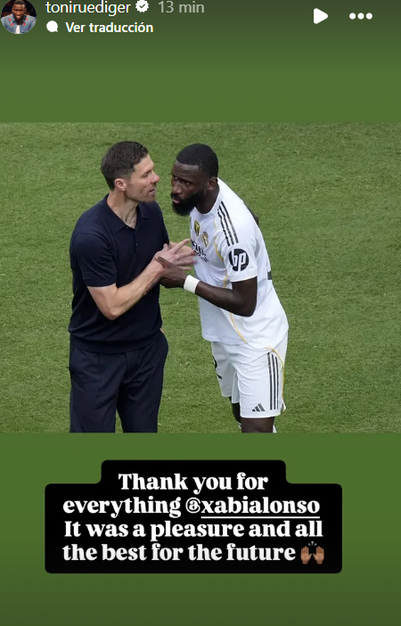 Antonio Rüdiger también se suma a las despedidas de Xabi Alonso: "Muchas gracias por todo. Fue un placer y todo lo mejor para el futuro".