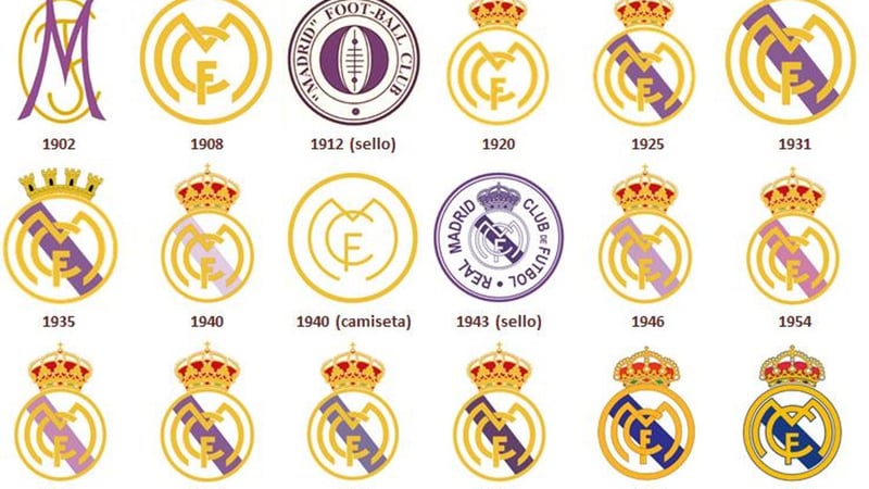 La corona real, la banda morada republicana y unos tonos cada vez más dorados son las principales modificaciones que ha sufrido el escudo madridista desde el primer diseño de 1902 hasta la actualidad