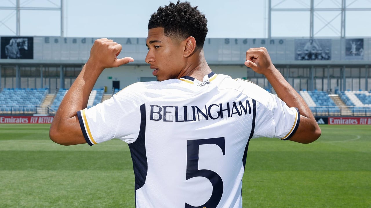 Jude Belligham posando con la camiseta del Real Madrid la temporada pasadaRMCF