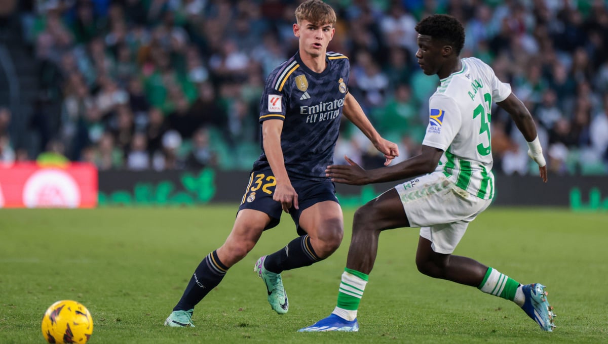 Nico Paz ante el Betis con la camiseta del MadridCordon press