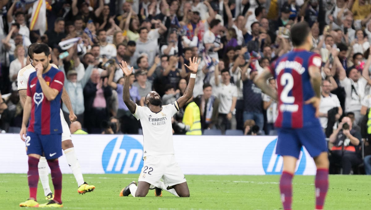 La temporada 2023/2024 en el Real Madrid podría haber sido recordada por el desafortunado derrumbe del muro defensivo que sostenía al equipo de Carlo Ancelotti, que lleva todo el año sin poder contar con Thibaut Courtois, David Alaba y el recién recuperado Eder Militao. Sin embargo, con LaLiga en el bolsillo y ya sólo a tres partidos de la Décimoquinta Champions, será recordada por el espectacular rendimiento de Antonio Rüdiger. Las lesiones de sus compañeros han impedido descansar al carismático central, que ha crecido en el equipo blanco hasta un nivel superlativo y ha congeniado a la perfección con el madridismo gracias a su expresiva personalidad. La semana pasada no pudo salir mejor en la familia merengue: dos victorias propias, ante el Manchester City y en El Clásico, sumadas al pleno de derrotas para sus eternos rivales, Barça y Atlético.