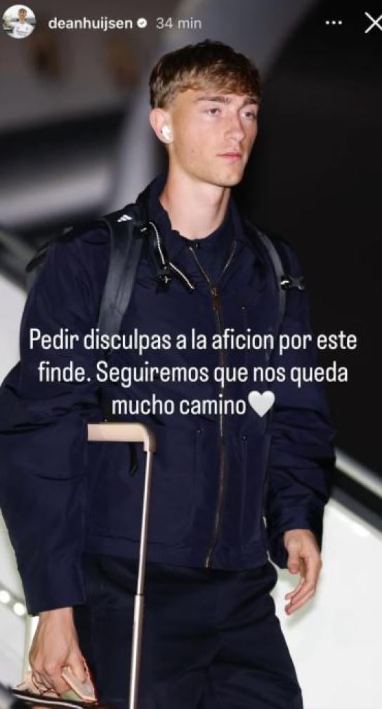 El central del Real Madrid, Dean Huijsen, utilizó sus redes sociales para disculparse con su afición después de la histórica derrota por 5-2 frente al Atlético. Reconoce errores y asegura que aún resta mucha temporada