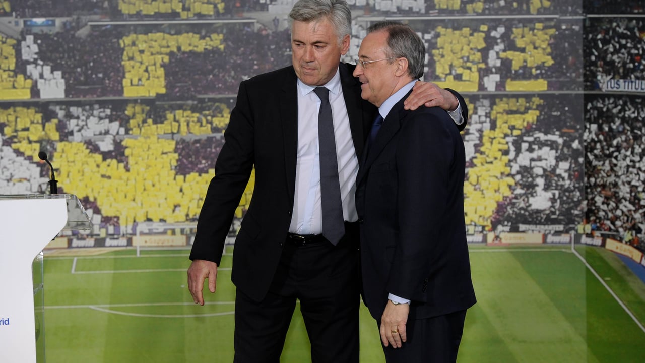 Florentino Pérez y Carlo Ancelotti durante la presentación del italiano como técnico blancoCordon press