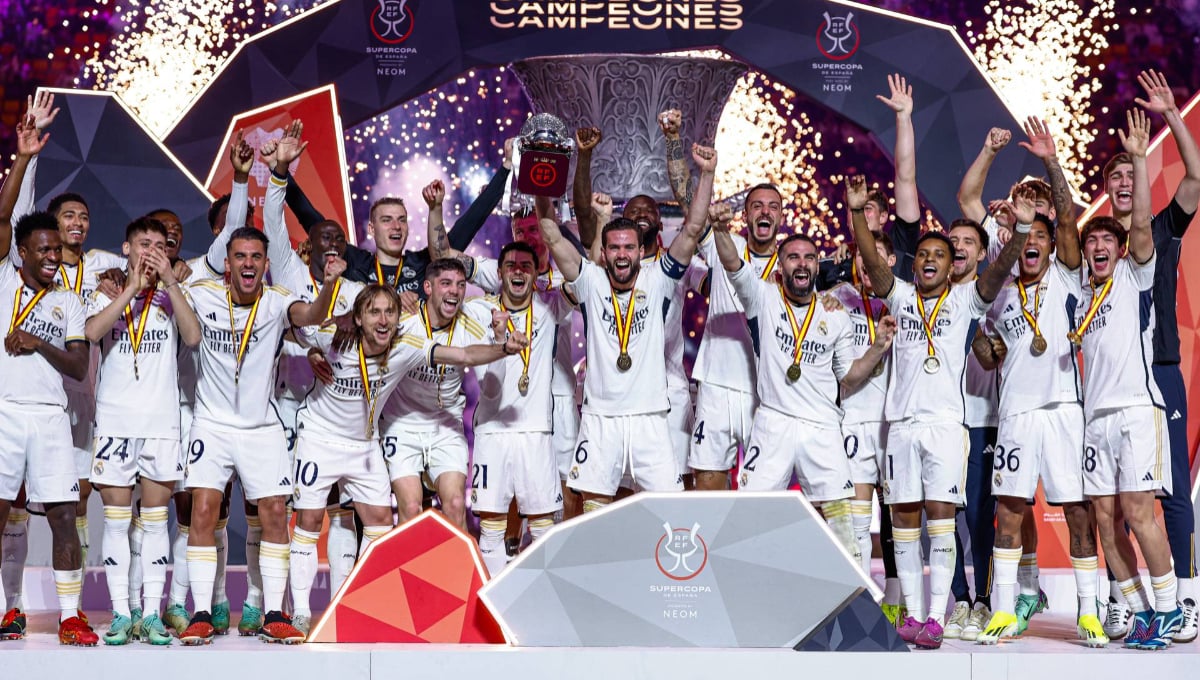 El conjunto merengue ha levantado tres trofeos en la temporada 2023/2024: la Supercopa de España, conquistada en enero tras derrotar a Atlético y Barça; LaLiga EA Sports, certificada con cuatro jornadas de adelanto; y la Decimoquinta UEFA Champions League, en Wembley ante el Borussia Dortmund