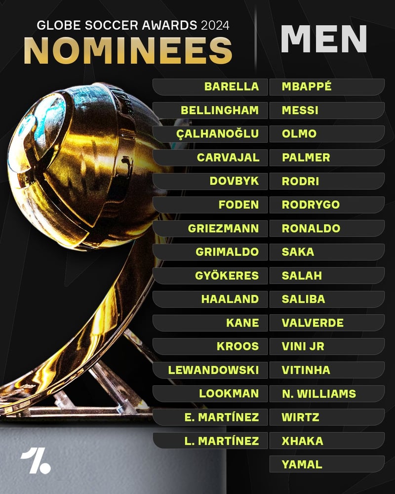 Rodri Hernández tratará de arrebatarle un nuevo trofeo a Vinicius. El español no llega como único representante de la Premier League ya que también son candidatos: Erling Haaland, Mohamed Salah, Phil Foden, Dibu Martínez, Cole Palmer, Bukayo Saka y William Saliba. En cuanto a los jugadores del Barcelona, son candidatos al Globe Soccer Awards: Robert Lewandowski, Lamine Yamal y Dani Olmo.