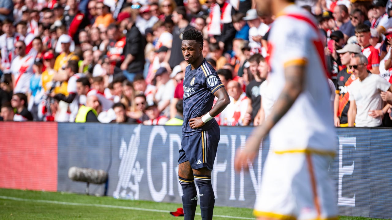 La temporada brutal del Real Madrid en LaLiga sufrió un varapalo en Vallecas, donde el Rayo, en el debut de Iñigo Pérez sacó un punto ante el líder, dejando al Girona la opción de recortar la distancia en la clasificación tras la derrota que sufrieron en el Bernabéu, algo que los de Míchel no han sido capaces de hacer tras caer en San Mamés. Pero más allá del partido, en el que el Madrid estuvo muy lejos de su mejor versión, acusando las bajas de Belligham y Brahim y el mal día de su otra gran estrella, Vinicius Junior, que estuvo lejísimos de su mejor versión. Sin embargo, el brasileño volvió a ser el protagonista involuntario por una lacra que le persigue desde que llegó al club blanco, el racismo.