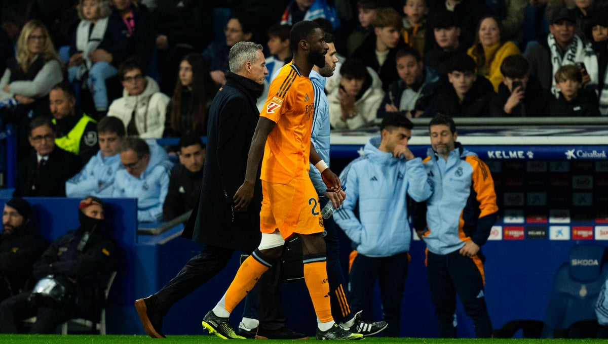 Rüdiger, de 31 años, se retiró lesionado este sábado en la primera mitad del choque frente al Espanyol. El Real Madrid ha confirmado a través de sus redes oficiales que el central alemán sufre una rotura en el bíceps femoral derecho. Sin duda, esto es un nuevo varapalo para la defensa del club blanco. Alaba todavía no ha salido en el once titular esta temporada, y Militao continúa con su proceso de recuperación. Ancelotti tiene disponible a Alaba, Asencio, Vallejo y Tchouamení (reconvertido) para la ida de los dieciseisavos de final de la máxima competición europea. Eso sí, Ancelotti no puede perder de vista el choque del próximo sábado frente al Atlético de Madrid (segundo clasificado).