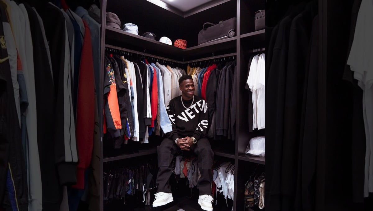Vinicius Jr ha abierto su armario y ha hecho gala de él en sus redes sociales. El jugador del Real Madrid tiene una gran colección de zapatillas que ya ha mostrado en otras ocasiones. Entre sus perchas no faltan camisetas con letras grandes, gorras hacia atrás, muchos pantalones anchos y algún que otro sombrero de reconocidas marcas.