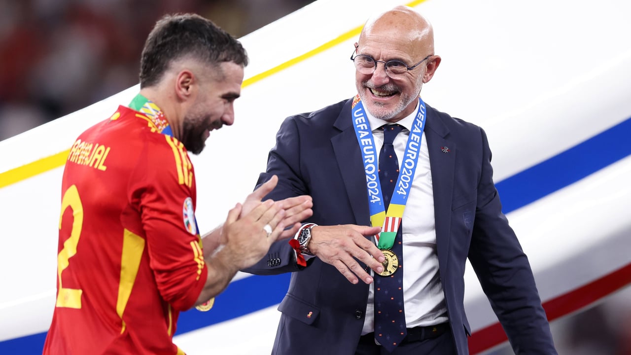 Luis de la Fuente junto a Dani Carvajal celebrando la Eurocopa de veranoCordon Press