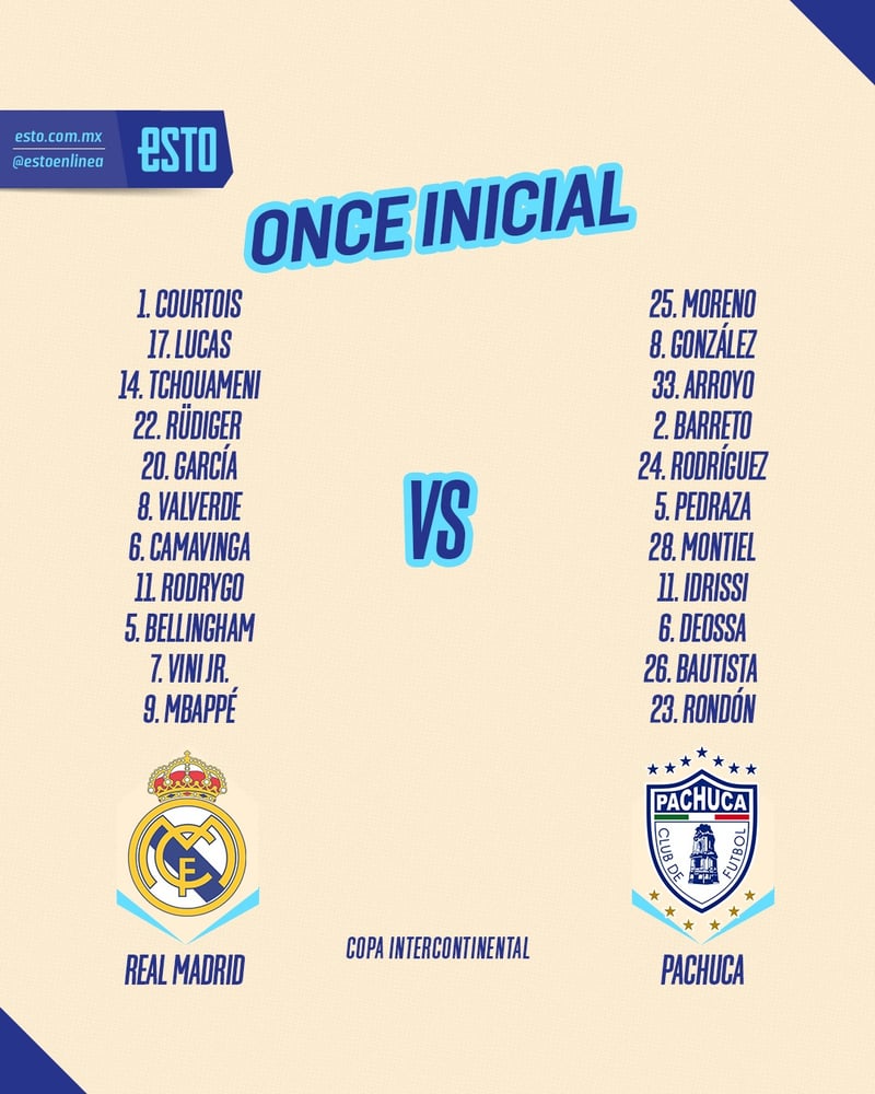 - Real Madrid: Courtois; Lucas Vázquez, Tchouaméni, Rüdiger, Fran García; Valverde, Camavinga, Rodrygo; Bellingham, Vinicius y Mbappé.