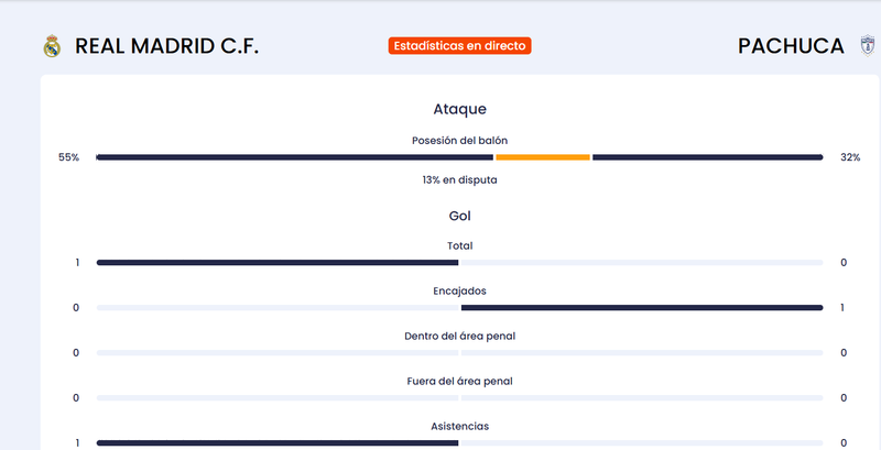 Las estadísticas de la primera mitad entre Real Madrid y Pachuca
