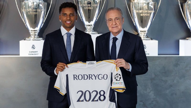 Rodrygo Goes ha renovado con el Real Madrid hasta 2028. El futbolista brasileño amplía su contrato con la entidad blanca, fruto de los goles y éxitos conseguidos desde su llegada. Tras sellar la firma, el extremo analizó en los canales oficiales del club cómo han sido estos años y sus mejores recuerdos has la fecha: “Estoy muy feliz. Es un día muy especial para mí". Estoy muy contento por volver a esta sala, como cuando firmé la primera vez, y hacerlo ahora para mi renovación”.