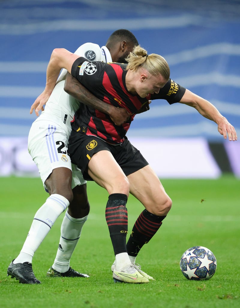 En el choque del curso pasado entre Real Madrid y Manchester City, en las semifinales de la Champions, se habló mucho del pegajoso marcaje que el central alemán le hizo al delantero noruego. Para este martes, Rüdiger marca territorio ante la reedición del duelo