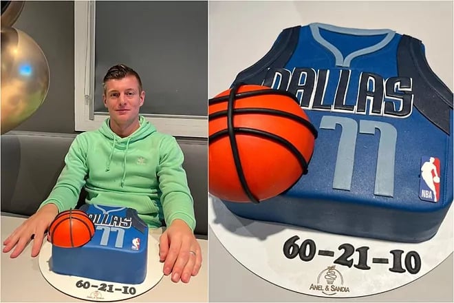 Aprovechando su 33 cumpleaños, Toni Kroos ha revelado que es un fanático de Luka Doncic, escolta de Dallas Mavericks de la NBA, misma franquicia en la que jugó toda su carrera deportiva en Estados Unidos su compatriota Dirk Nowitzki. "Agradezco todos vuestros mensajes de hoy. ¡Eso es lo que yo llamo una tarta de cumpleaños!", escribió el alemán en su cuenta de Instagram, al tiempo que mostraba su tarta de cumpleaños la cual estaba decorada con una camiseta de Luka Doncic de los Dallas Mavericks, con un balón de baloncesto y un 60-21-10, estadísticas en puntos rebotes y asistencias, para recordar el gran partido que hizo Luka Doncic de la semana pasada frente a los New York Knicks.